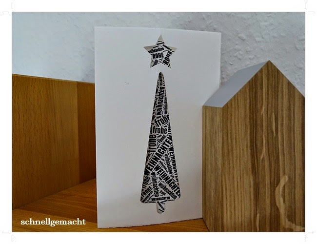 Weihnachten wirft seine Schatten voraus, hier ein Entwurf für eine Weihnachtskarte. Wort Wolke "frohe weihnachten". Das Objekt Baum ist geschnitten mit meiner Silhoutte Cameo.